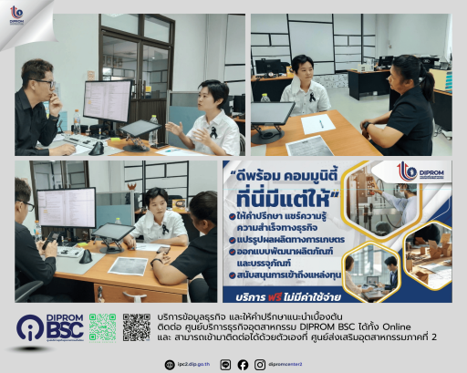 ทีมดีพร้อมเซ็นเตอร์ 2 โดยเจ้าหน้าที่ศูนย์บริการธุรกิจอุตสาหกรรม DIPROM BSC ให้บริการข้อมูลธุรกิจอุตสาหกรรมเบื้องต้น แก่ผู้ประกอบการ