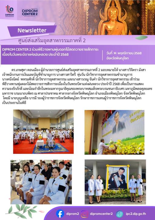 DIPROM CENTER 2 ร่วมพิธีวางพานพุ่มดอกไม้สดถวายราชสักการะ เนื่องในวันพระบิดาแห่งฝนหลวง ประจำปี 2568
