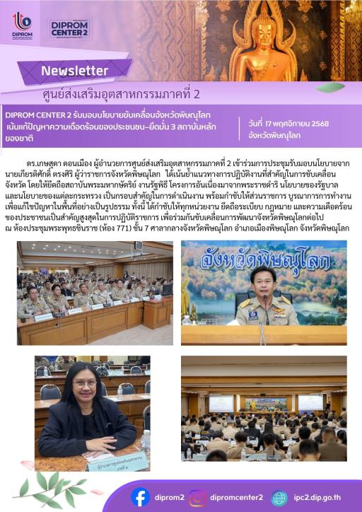 DIPROM CENTER 2 รับมอบโยบายขับเคลื่อนจังหวัดพิษณุโลก เน้นแก้ปัญหาความเดือดร้อนของประชนชน ยึดมั่น 3 สถาบันหลัก ของชาติ