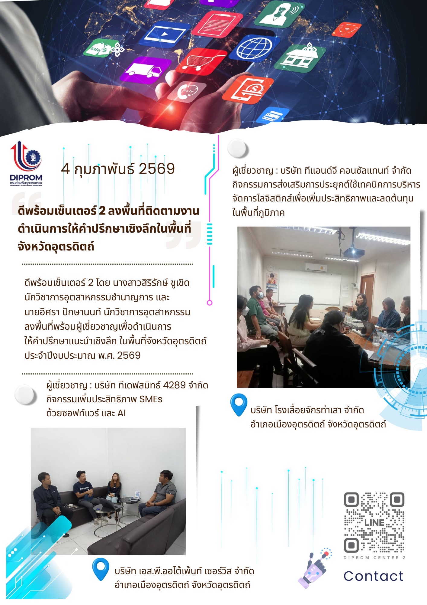 ดีพร้อมเซ็นเตอร์ 2 ลงพื้นที่ติดตามงาน ดำเนินการให้คำปรึกษาเชิงลึกในพื้นที่ จังหวัดอุตรดิตถ์