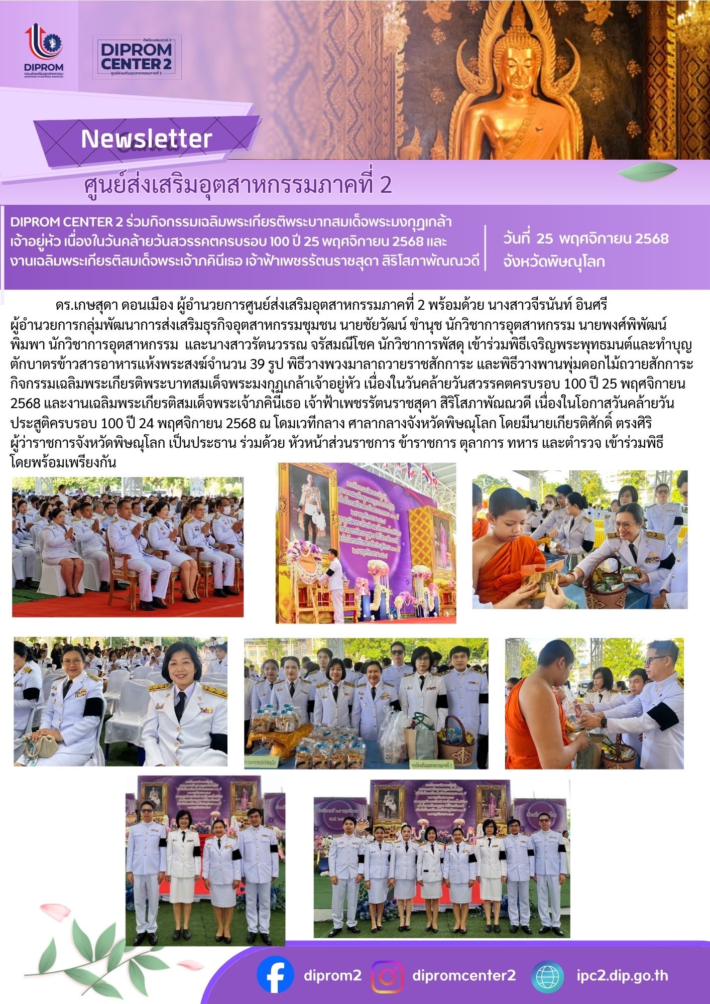 DIPROM CENTER 2 ร่วมกิจกรรมเฉลิมพระเกียรติพระบาทสมเด็จพระมงกุฎเกล้าเจ้าอยู่หัว เนื่องในวันคล้ายวันสวรรคตครบรอบ 100 ปี 25 พฤศจิกายน 2568 และ งานเฉลิมพระเกียรติสมเด็จพระเจ้าภคินีเธอ เจ้าฟ้าเพชรรัตนราชสุดา สิริโสภาพัณณวดี