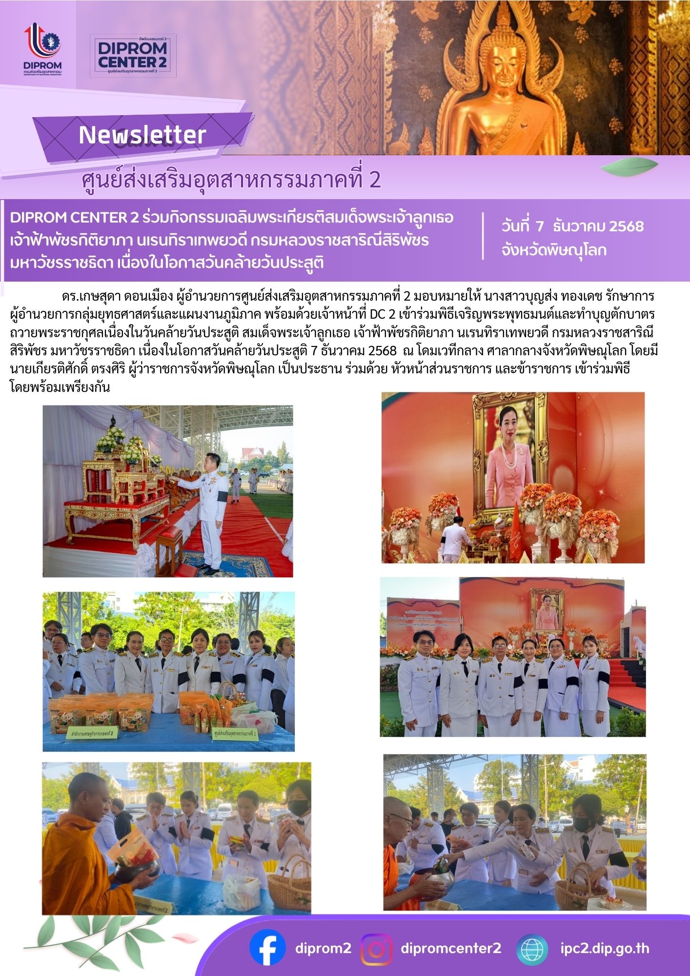 DIPROM CENTER 2 ร่วมกิจกรรมเฉลิมพระเกียรติสมเด็จพระเจ้าลูกเธอ เจ้าฟ้าพัชรกิติยาภา นเรนทิราเทพยวดี กรมหลวงราชสาริณีสิริพัชร มหาวัชรราชธิดา เนื่องในโอกาสวันคล้ายวันประสูติ