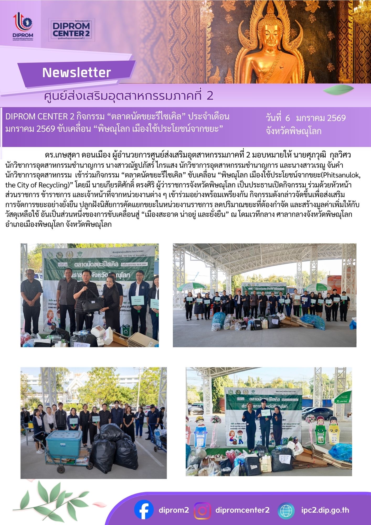 DIPROM CENTER 2 กิจกรรม "ตลาดนัดขยะรีไซเคิล" ประจำเดือน มกราคม 2569 ขับเคลื่อน "พิษณุโลก เมืองใช้ประโยชน์จากขยะ"