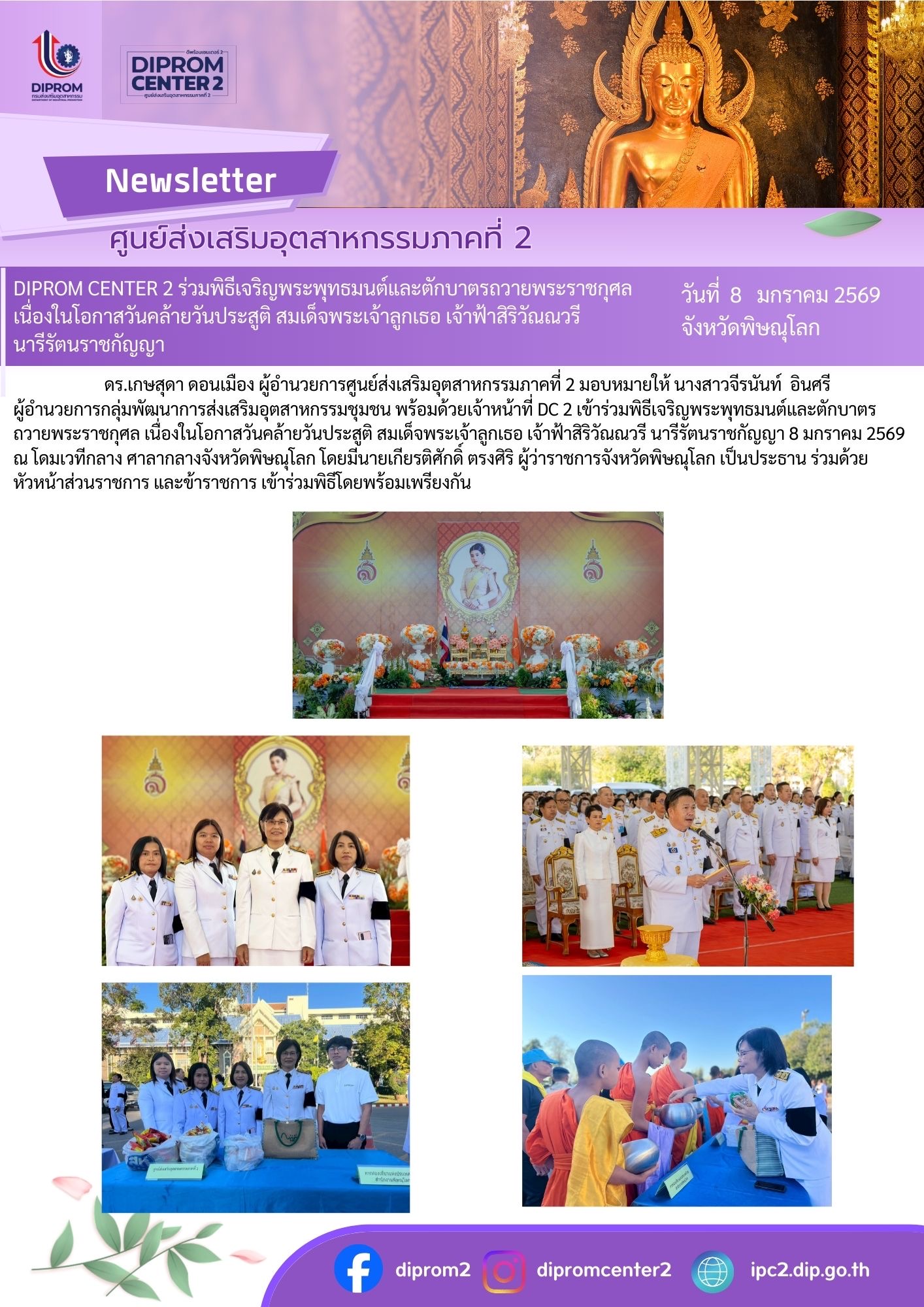 DIPROM CENTER 2 ร่วมพิธีเจริญพระพุทธมนต์และตักบาตรถวายพระราชกุศล เนื่องในโอกาสวันคล้ายวันประสูติ สมเด็จพระเจ้าลูกเธอ เจ้าฟ้าสิริวัณณวรี นารีรัตนราชกัญญา