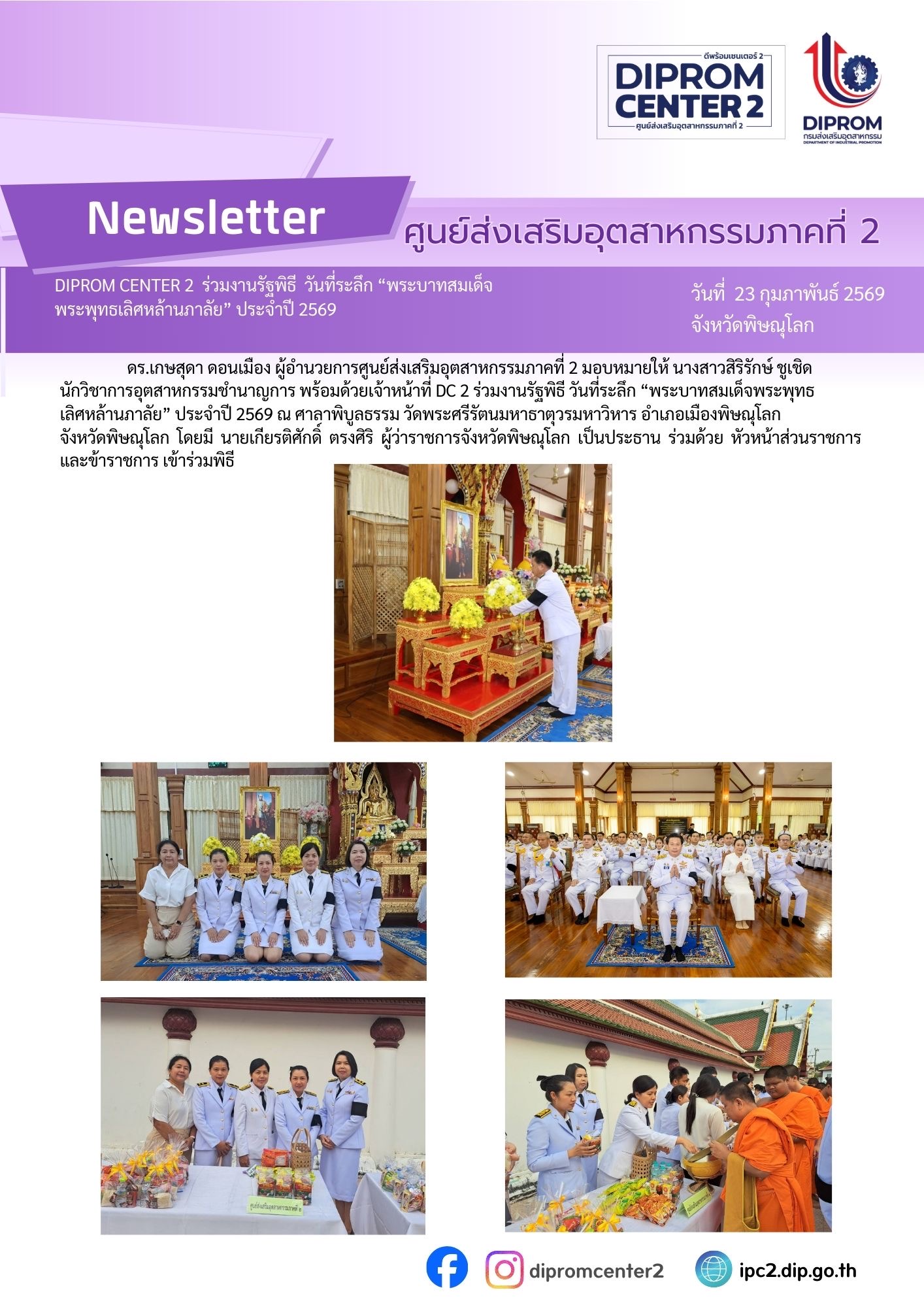 DIPROM CENTER 2 ร่วมงานรัฐพิธี วันที่ระลึก "พระบาทสมเด็จ พระพุทธเลิศหล้านภาลัย" ประจำปี 2569