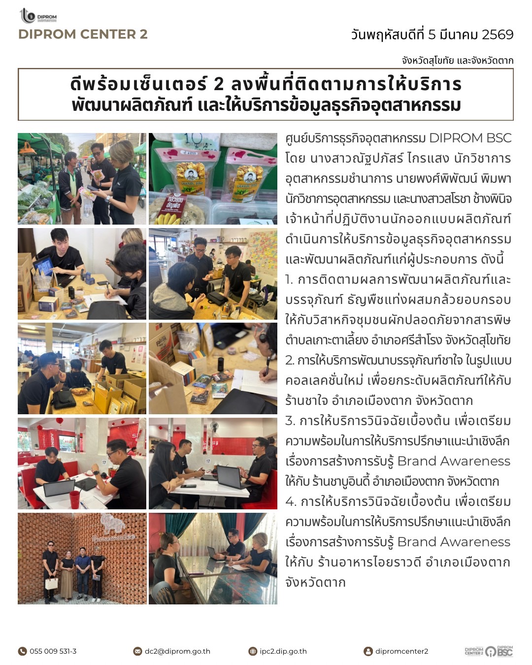 ดีพร้อมเซ็นเตอร์ 2 ลงพื้นที่ติดตามการให้บริการ พัฒนาผลิตภัณฑ์ และให้บริการข้อมูลธุรกิจอุตสาหกรรม