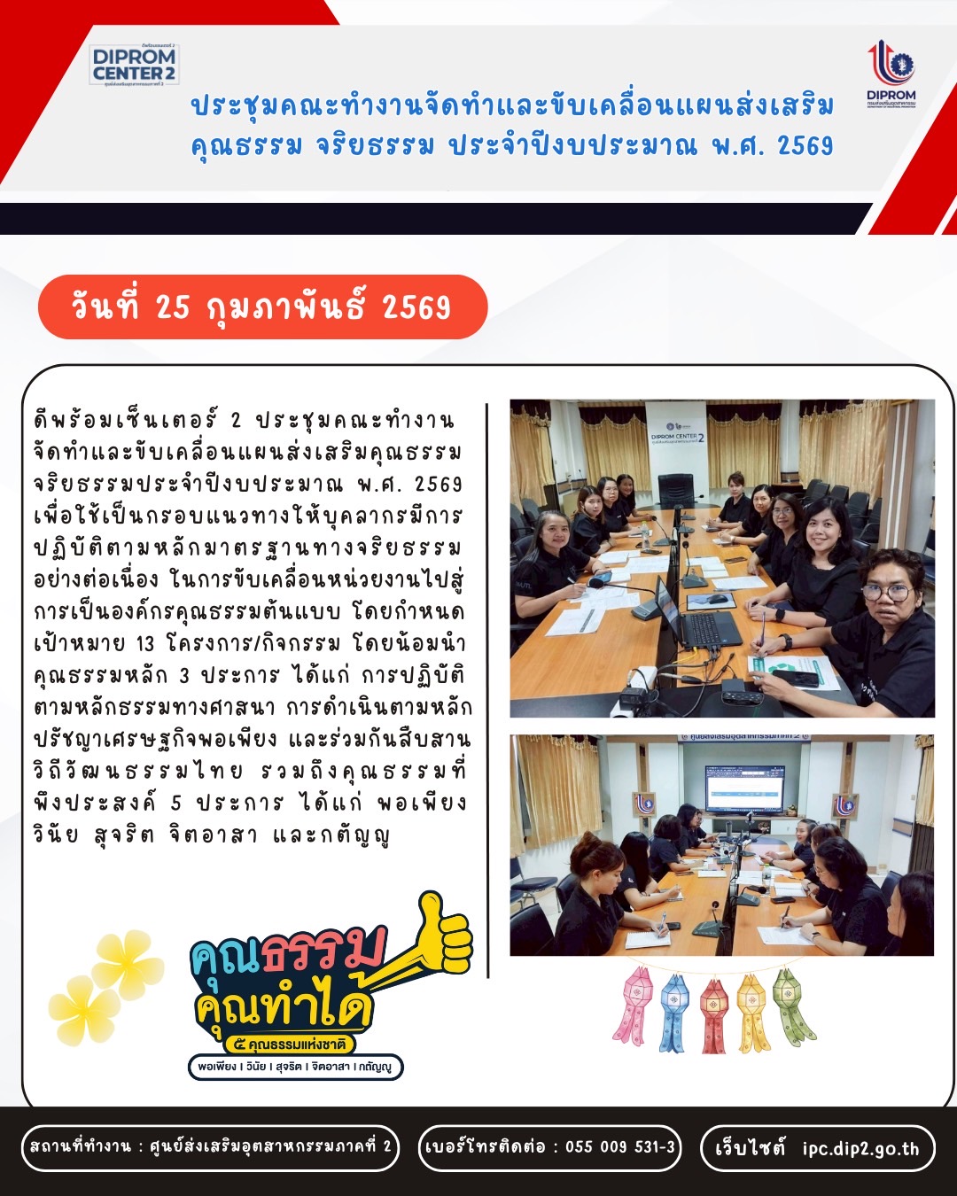 ประชุมคณะทำงานจัดทำและขับเคลื่อนแผนส่งเสริม คุณธรรม จริยธรรม ประจำปีงบประมาณ พ.ศ. 2569