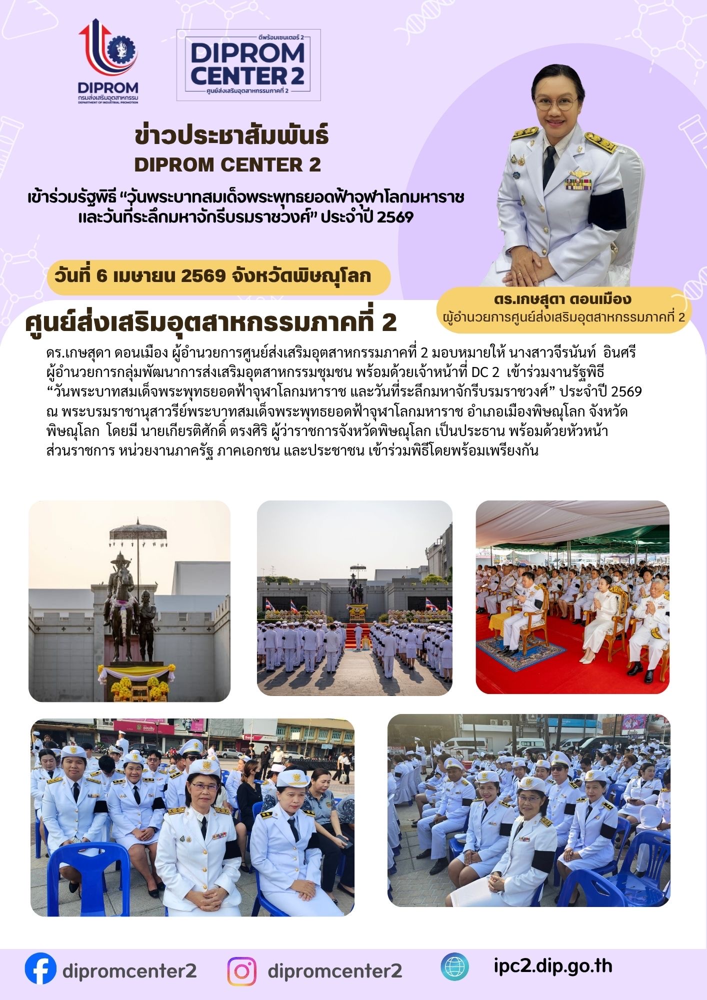 DIPROM CENTER 2 เข้าร่วมรัฐพิธี "วันพระบาทสมเด็จพระพุทธยอดฟ้าจุฬาโลกมหาราช และวันที่ระลึกมหาจักรีบรมราชวงศ์" ประจำปี 2569